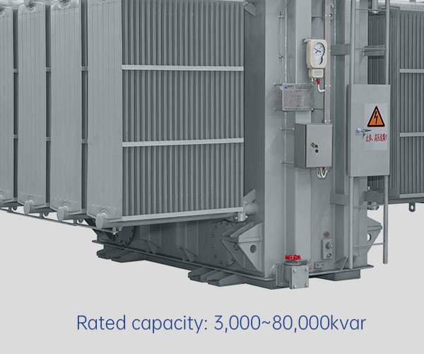 Suitable for power systems at 66kV and below, with a rated capacity range of 3,000~80,000kvar, a noise level below 65dB, A-class insulation, and insulation level complying with GB1094.6 standard, for outdoor application. Widely applied in substations and user power distribution stations.