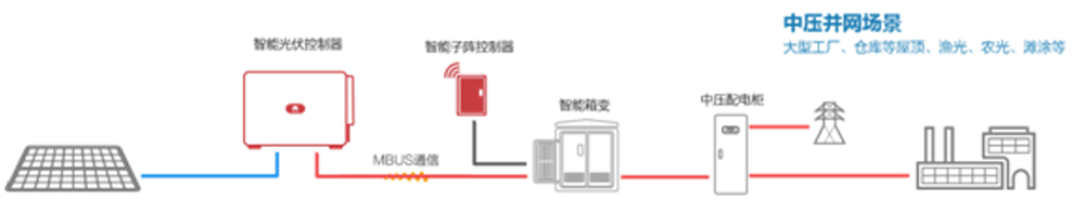 并网光伏发电系统是指太阳能电池利用太阳辐射能量产生的直流电(即太阳电池的“光生伏特效应”)通过并网光伏逆变器转换成交流电向电网输送的系统,其本质是利用太阳能进行发电的发电站。与煤、石油和天然气等传统能源进行发电的发电站系统相比,并网光伏发电系统具有可再生、无污染等优点。该光伏项目采用10kV等级高压并网方式,光伏系统包含一套okpay钱包电气自主制造的10kV等级4000kVA预装式光伏升压站、7160块光伏组件、13组300kW大功率智能组串式光伏逆变器、一套10kV智能并网开关柜等组成,光伏组件通过光生伏特效应产生电流,然后通过组串式逆变器进行逆变,将直流电转换为交流电,最后就地升压至10kV接入电网。