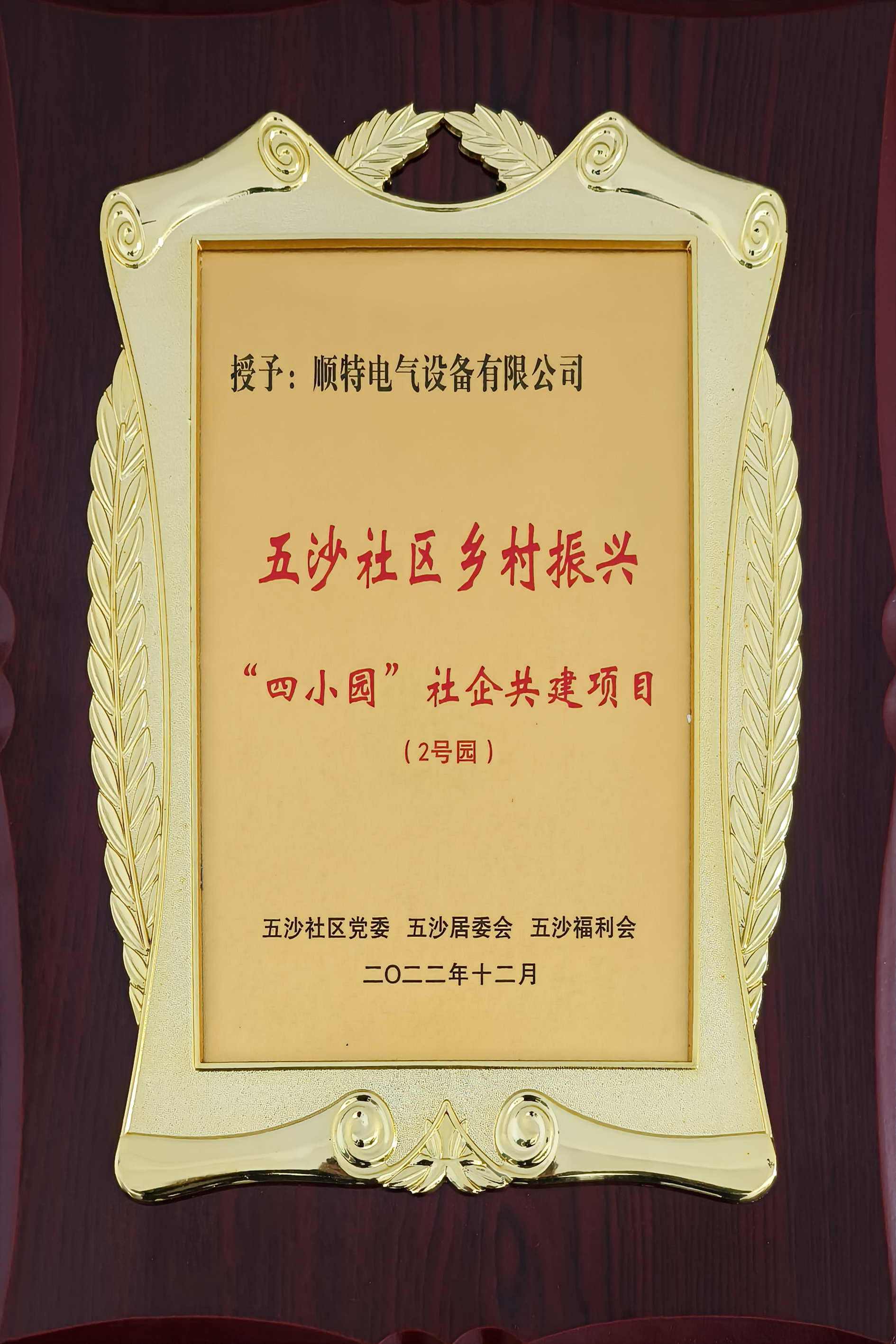 近日,公司荣获由五沙社区党委、五沙居委会、五沙福利会联合授予的“五沙社区乡村振兴‘四小园’社企共建项目(2号园)”奖牌!