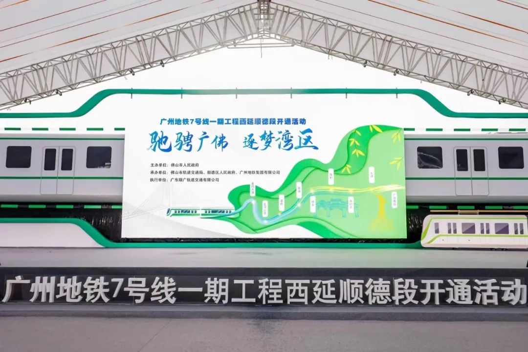 广州地铁7号线西延顺德段起于美的大道站,无缝对接广州南站,全长13.447km,共设8个站点,线路途经广州市番禺区和佛山市顺德区。地铁开通后,从终点站美的大道站出发前往广州南站仅需22分钟,到大学城南站约49分钟,为广佛两地居民提供更为快捷便利的出行方式,有利于促进两地科技、产业、人才的高效融合,为经济高质量发展提供坚实支撑。